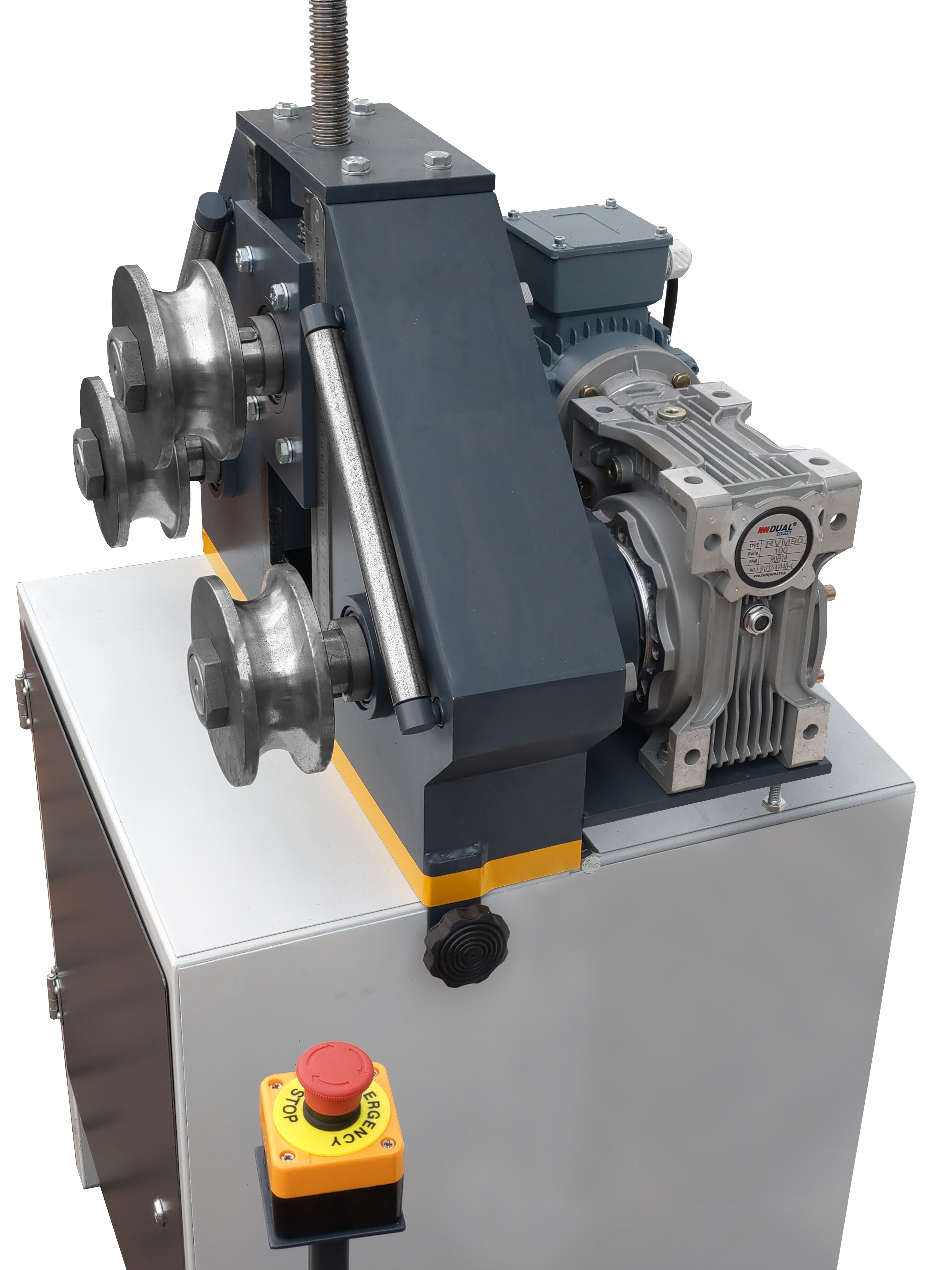 Najbardziej wyjątkową cechą RBM 45/1RB jest to, że posiada układ ręczny docisku górnej rolki oraz napęd dolnych rolek przez motoreduktor. Dzięki czemu zakres roboczy giętarki umożliwia gięcie rur o wymiarach 50x2,0 mm.
