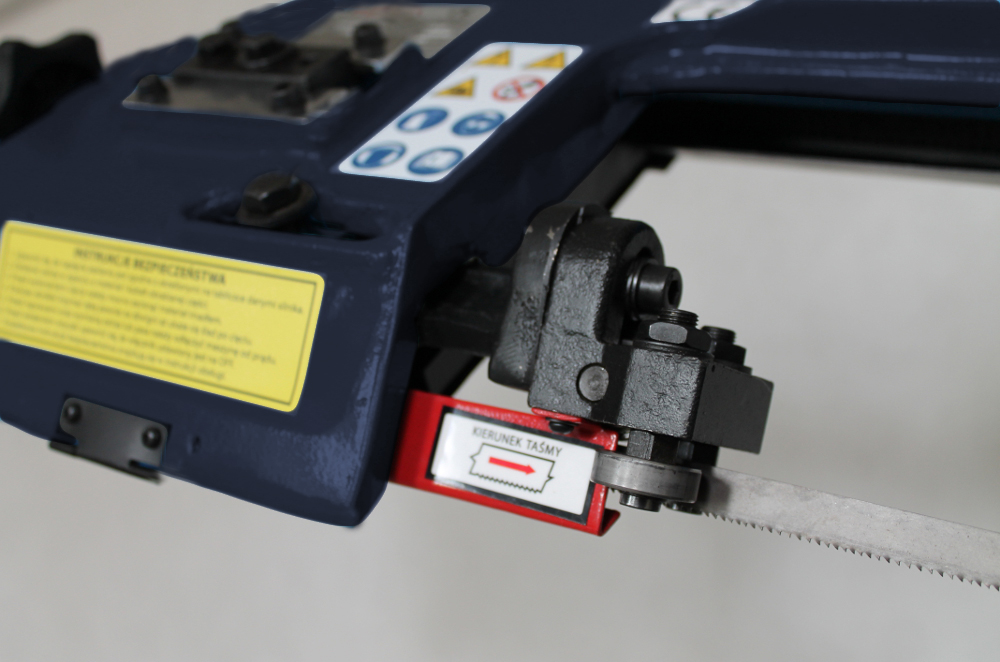Bezpieczeństwo zapewnią osłony taśmy tnącej oraz mikro wyłączniki zatrzymujące pracę silnika po zakończeniu cyklu ciecia lub otwarciu którejkolwiek z osłon.