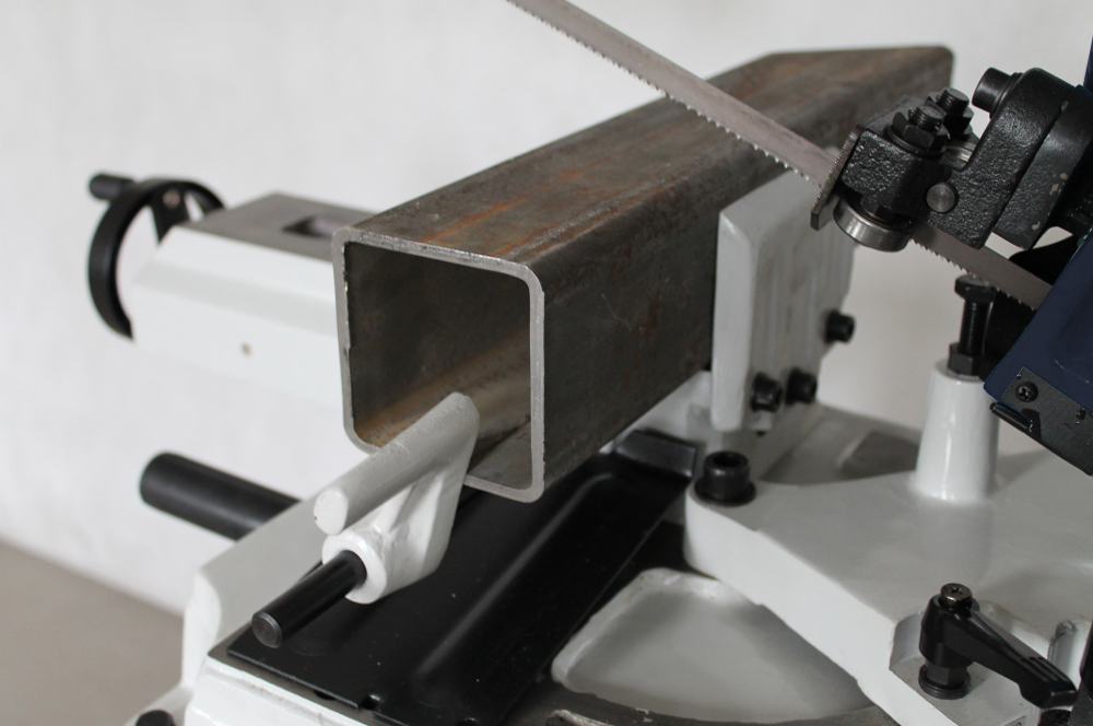 Konstrukcja ramienia tak została zmodyfikowana, że przecinarka pozioma w chwilę może zmienić się w przecinarkę pionową ze stołem. Ma to zastosowanie nie tylko przy przecinaniu metali ale także może służyć jako przecinarka-wyrzynarka pionowa do prac stolarskich, cięcia aluminium, drewna itp.