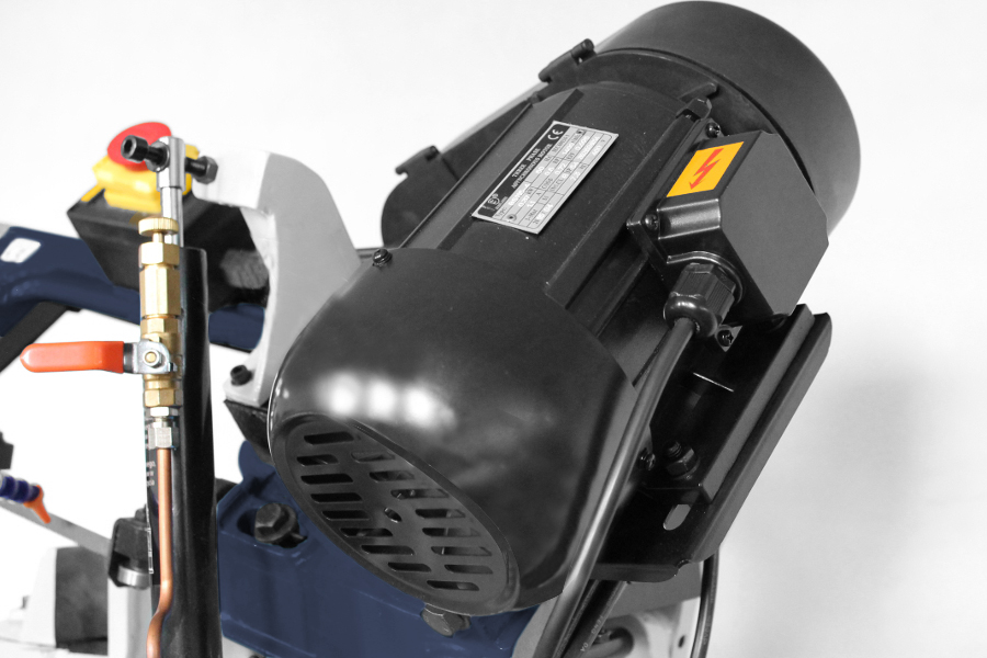Przecinarka wyposażona jest w wydajny system chłodzenia, w skład którego wchodzą pompka oraz zbiornik na chłodziwo umieszczone w podstawie przecinarki.