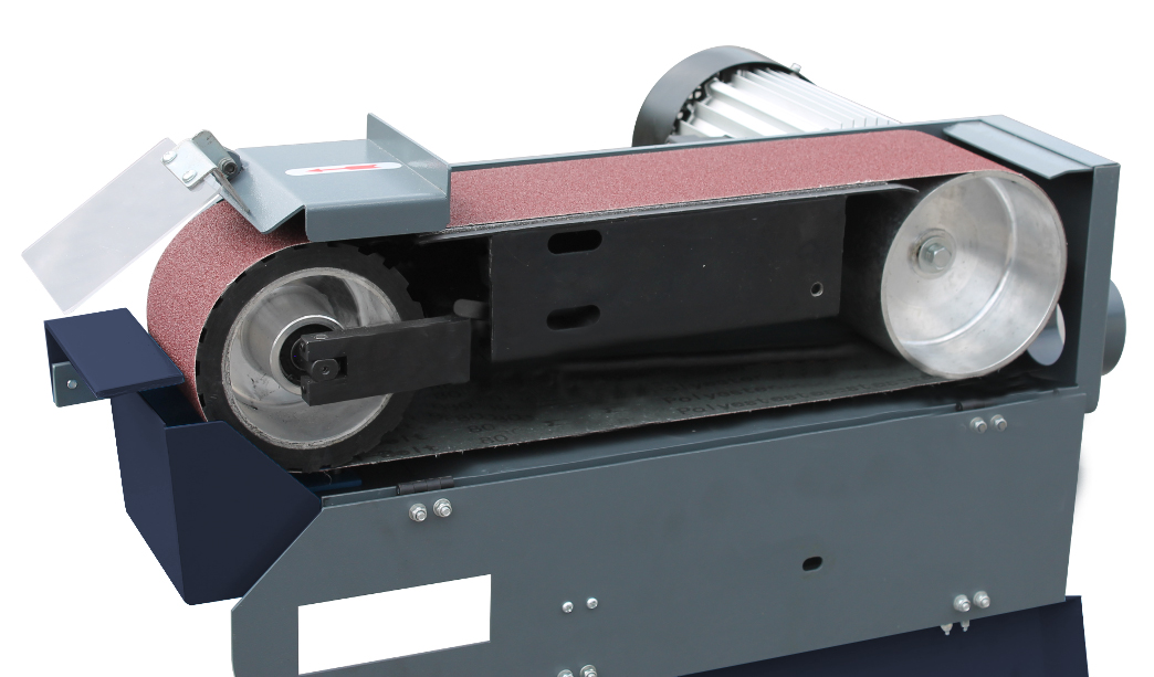 Maszyna wyposażona jest w taśmę ścierną o szerokości 100mm oraz długości 1220 mm, a ich wymiana jest bardzo prosta i szybka. Szlifierka posiada 2 prędkości taśmy: 19 i 38 m/s.