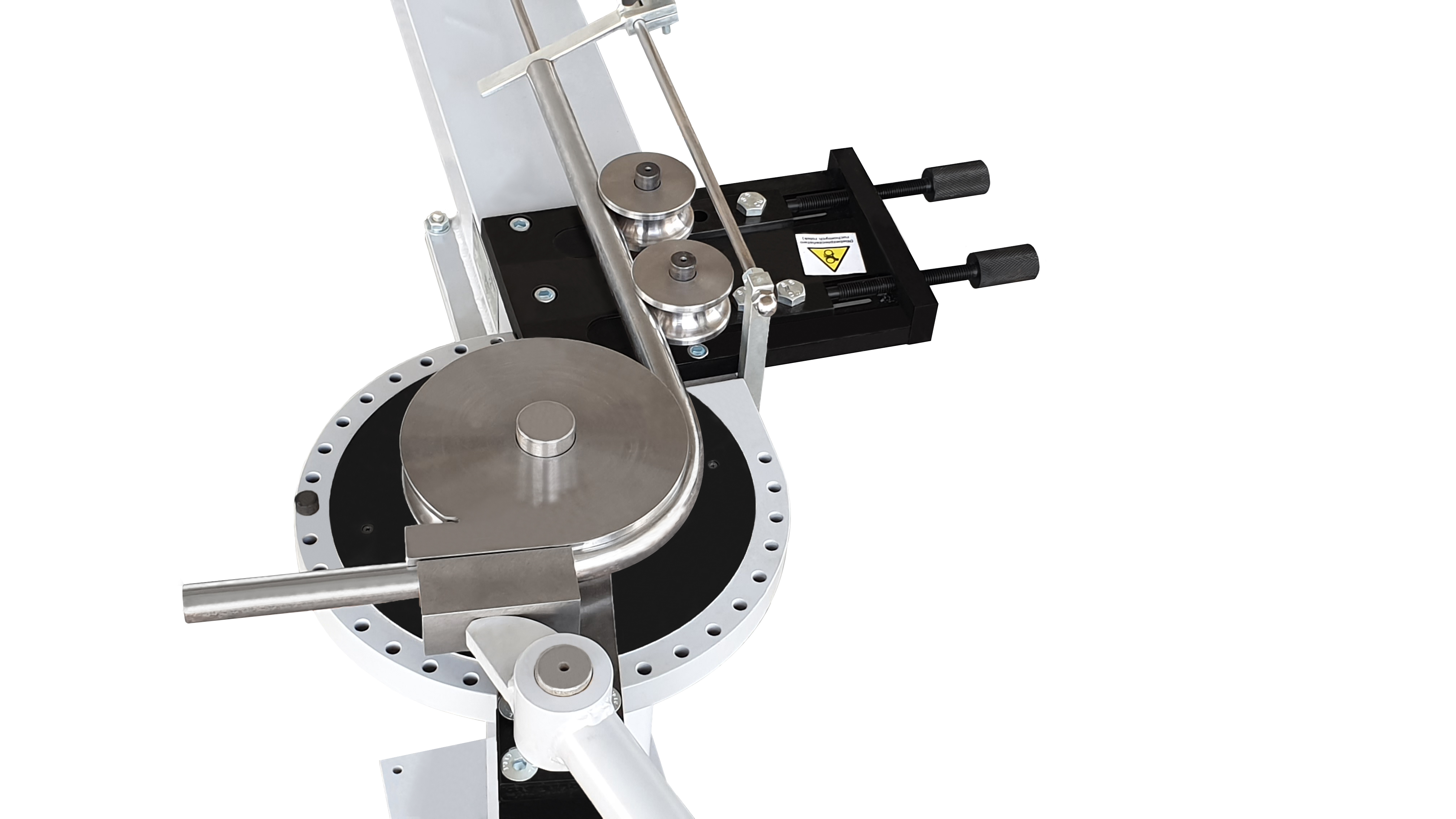 Matryca ginąca manualna. Zacisk rury na kamieniu odbywa się ręcznie za pomocą mimośrodu co zmniejsza możliwość przesunięcia się rury w kopytach i tym samym porysowania powierzchni. Manualne programowanie kąta gięcia za pomocą suwaka . Szybkie ręczne pozycjonowanie posuwu rury dzięki zapadkom blokującym.