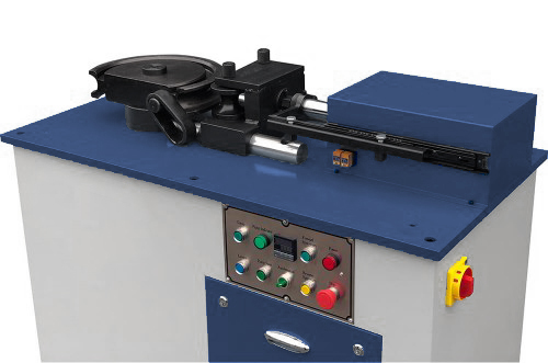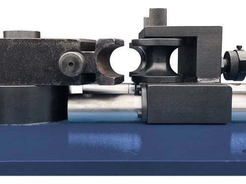 W trybie automatycznym maszyna sama dociska kopyto na odpowiednią odległość. Odległość docisku zależna jest od średnicy rury. Dzięki regulowanemu wyłącznikowi krańcowemu możemy ustawić odpowiedni docisk.