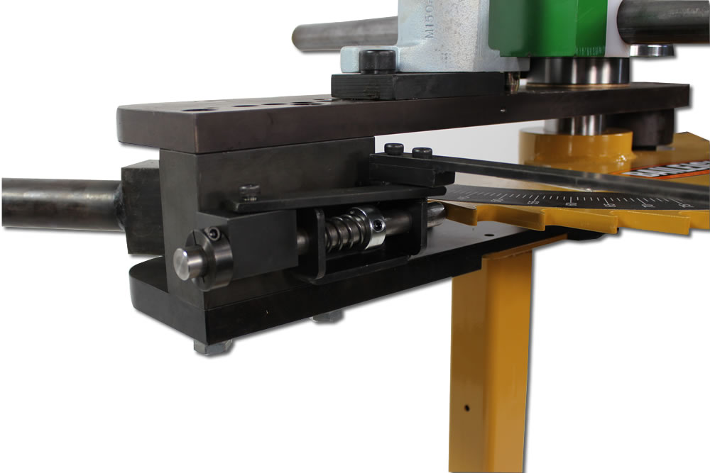 Podczas zginania operator po prostu uruchamia dźwignię od przodu lub do tyłu bez konieczności przytrzymywania czegoś na maszynie. RDB-100 jest tak dobrze zaprojektowana, że po zmianie oprzyrządowania maszyna pozostaje w pełni fikcjonalna dla innej średnicy rury lub profila .