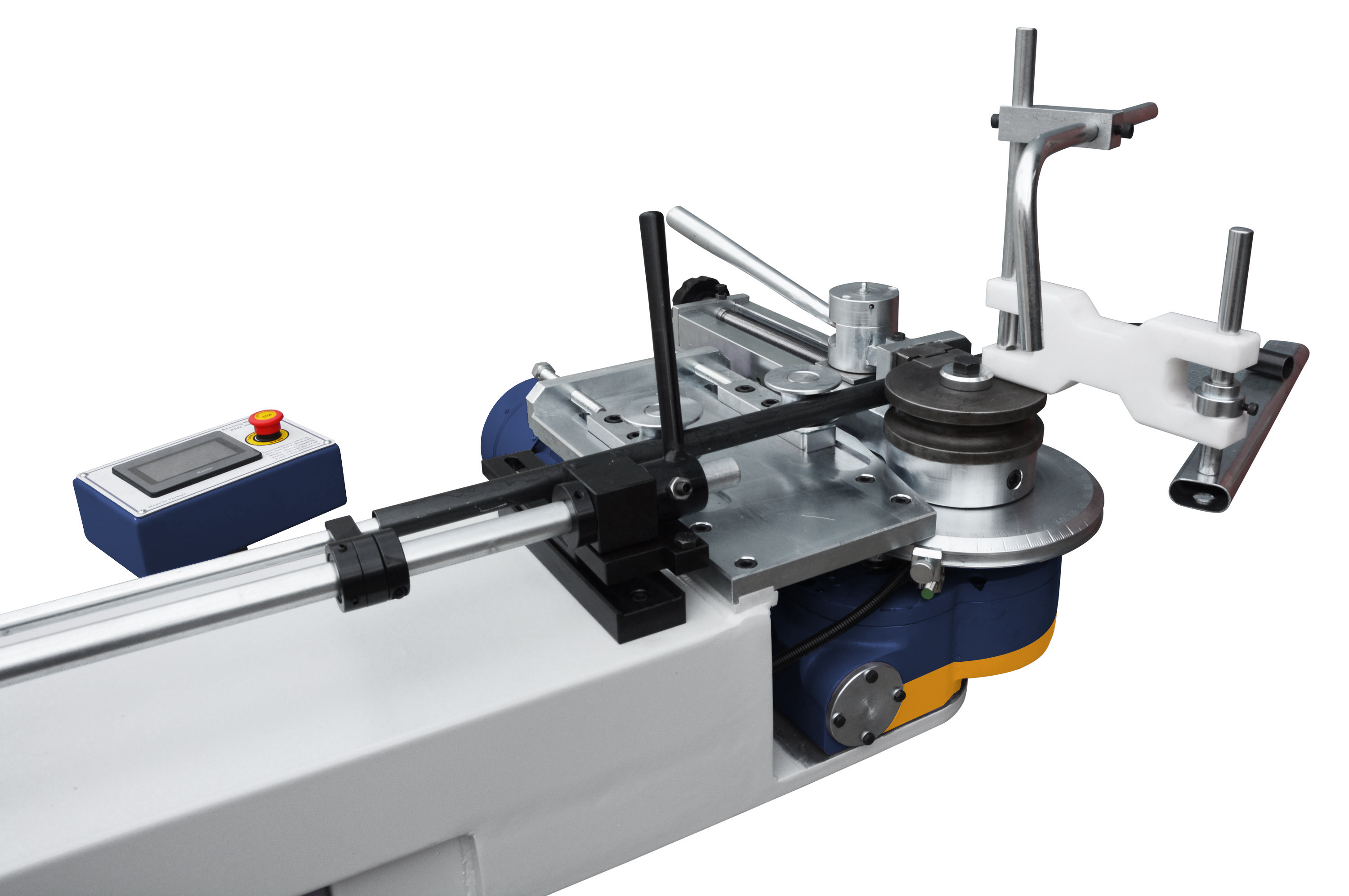Giętarka dodatkowo posiada przyrząd ręczny do rotacji rury.